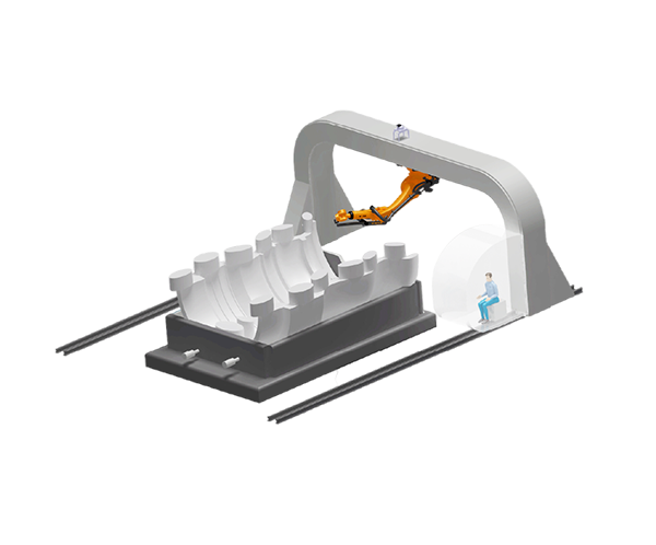 激光测量系统可以检测零件被加工表面尺寸,并将素具反馈给机器人,通过运算自动补偿由于铸造公差与夹具公差所引起的加工误差,提高零件打磨质量。